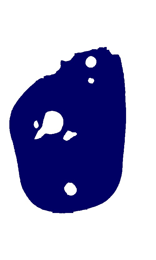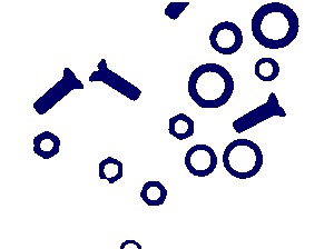 Here we create a copy of the image without bolts, by creating an empty image of the same size and then adding in all of the objects with Euler characteristic 0. Any object which is homotopy equivalent to a circle will have Euler characteristic 0 - ie. this includes washers and nuts, but not bolts. The PathComponent(A,n) function selects the nth object in the data set A, except where n=0, in which case the function returns the number of separate objects in A.gap> B=PureComplex(A!.binaryArray*0);;